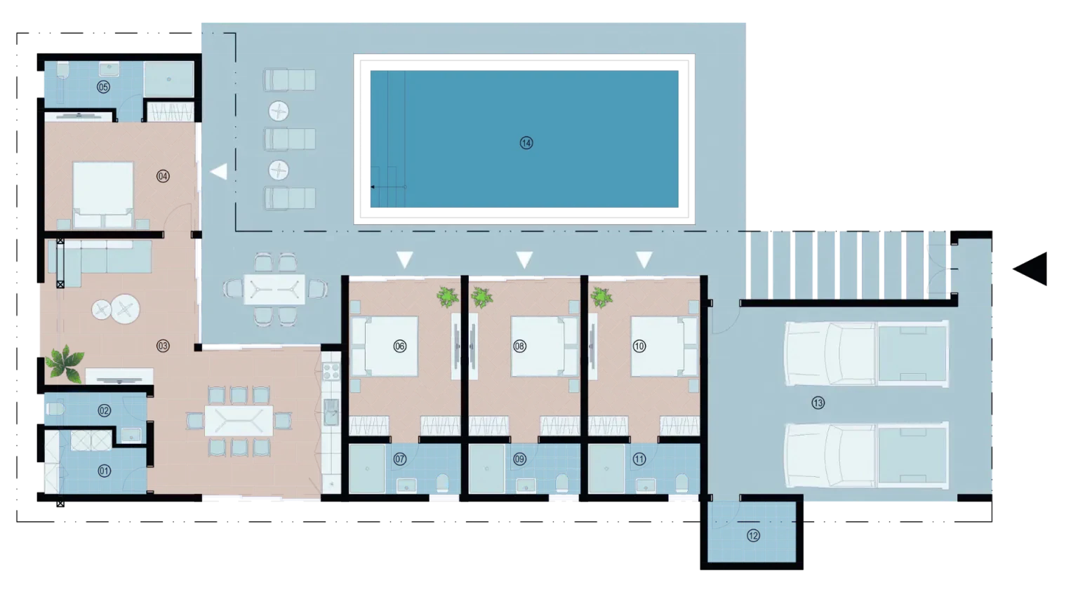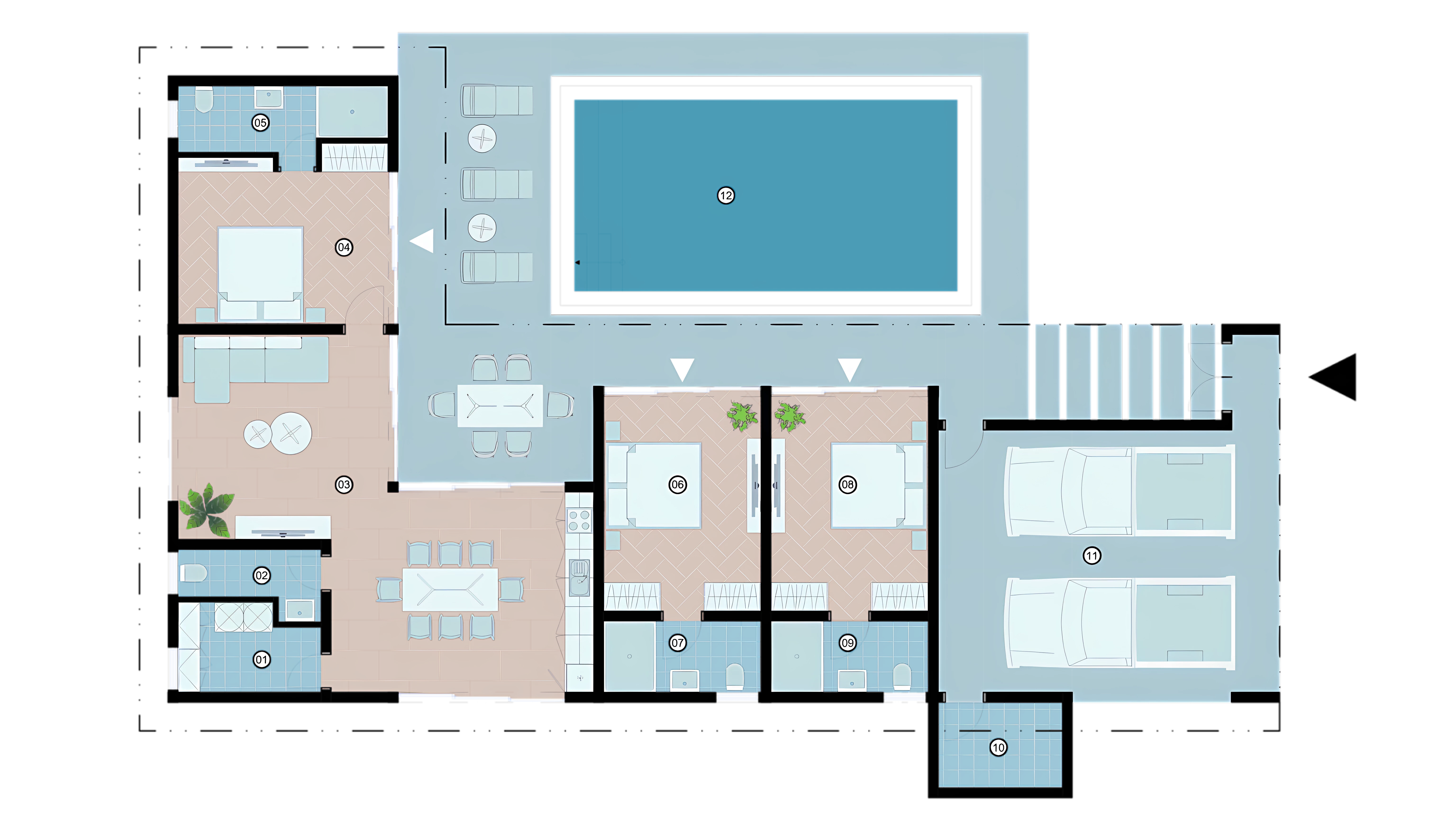 Žádné kompromisy, jen prostor pro vás a vaše blízké. Každá vila je navržena tak, aby nabídla maximální pohodlí a klid.